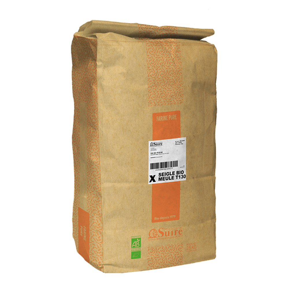 Farine de seigle français Type 130 , issue de l’Agriculture Biologique. Ecrasée uniquement sur meules de pierre naturelle de silex pour une qualité de farine exceptionnelle. Conditionnement en sac de 25Kg.
